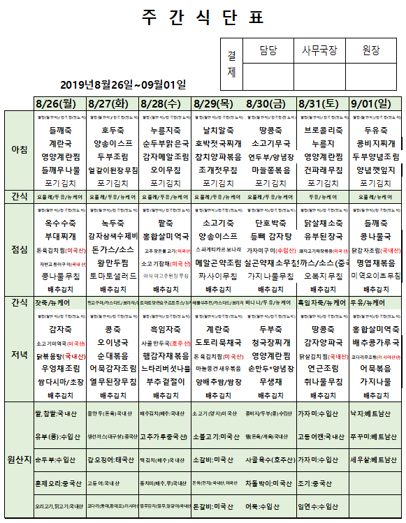 8월 5주차 주간식단표