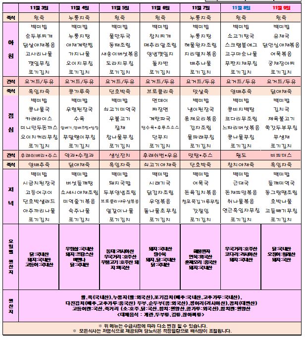 11월 1주차 식단표