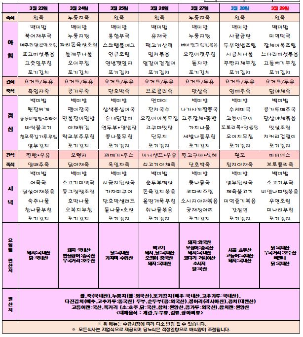3월 4주차 식단표