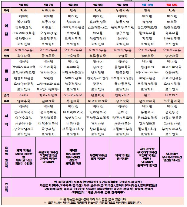 4월 2주차 식단표