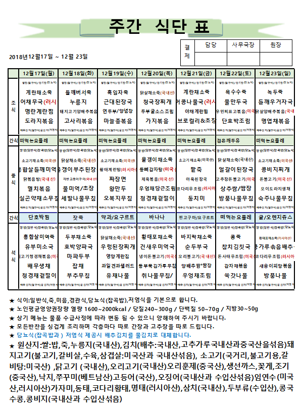 12월 4주차 주간식단표