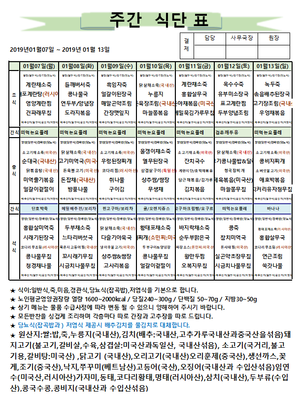 1월2주차 주간식단표