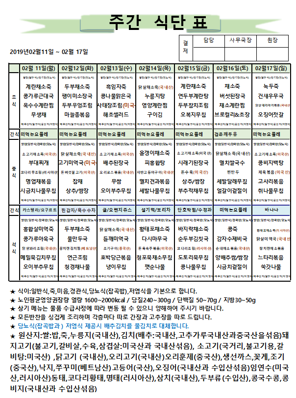 2월 3주차 주간식단표
