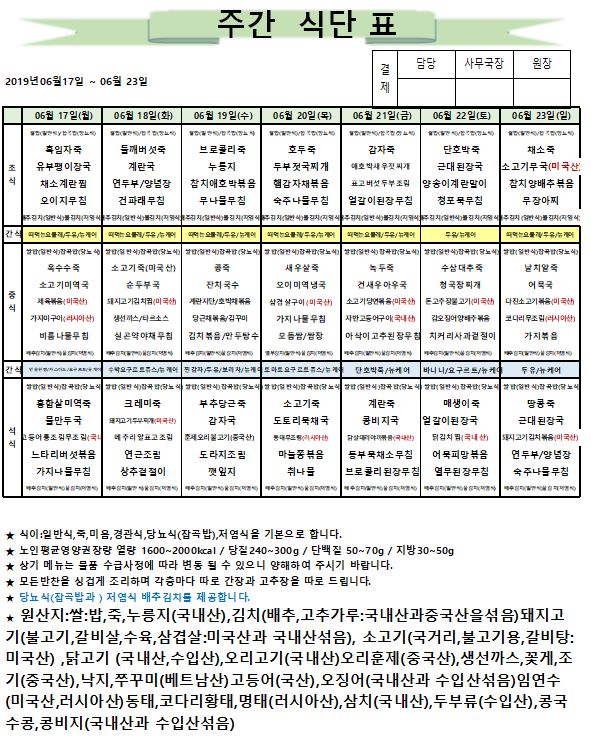 6월 3주차 주간식단표