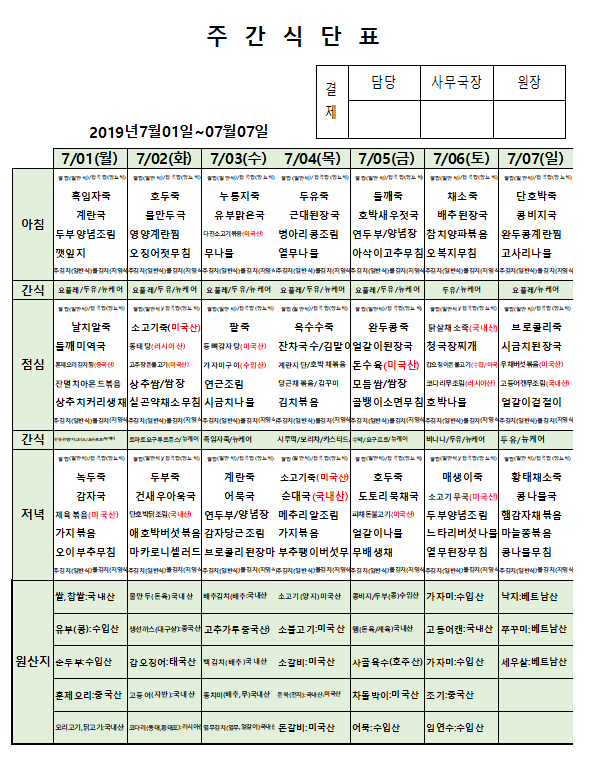 7월 1주차 주간식단표