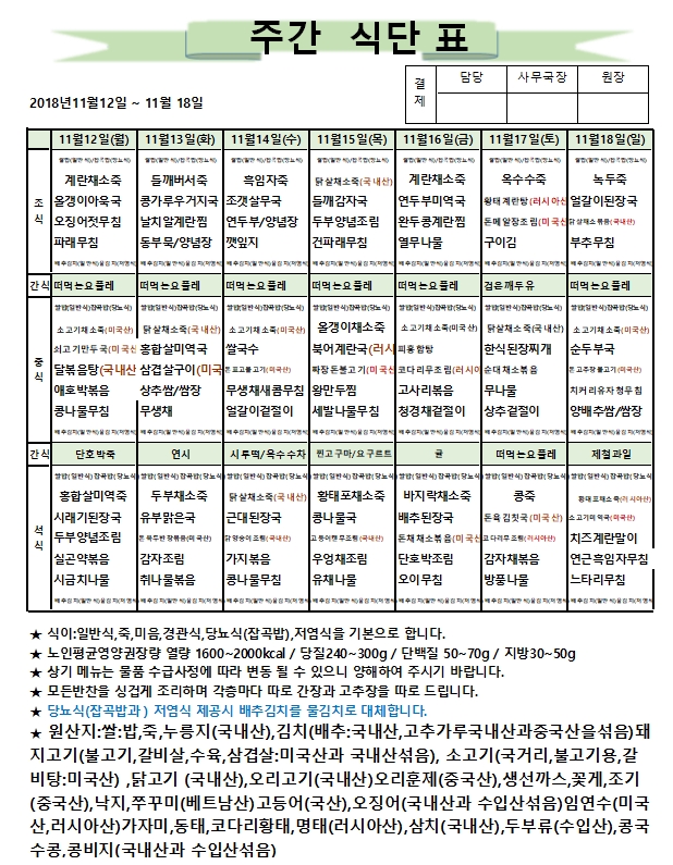 11월 3주차 주간식단표